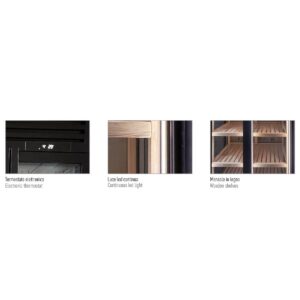 Ψηφιακός θερμοστάτης – θερμόμετρο touch screen 8 πόδια ρυθμιζόμενα Κλειδαριά Πόρτα frameless (χωρίς πλαίσιο) Θερμαινόμενο γυαλί Δυνατότητα αναστροφής φοράς πόρτας Μαυρισμένο γυαλί για την προστασία του κρασιού