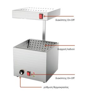 395.00€ Στις τιμές δεν συμπεριλαμβάνεται ΦΠΑΔιαθέτει 1 λάμπα θέρμανση στο κάτω μέρος (inox) ρυθμιζόμενη από θερμοστάτη -