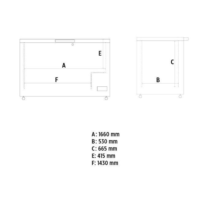 | Εσωτερικές διαστάσεις: | 1660 x 530 x 665(h)mm |