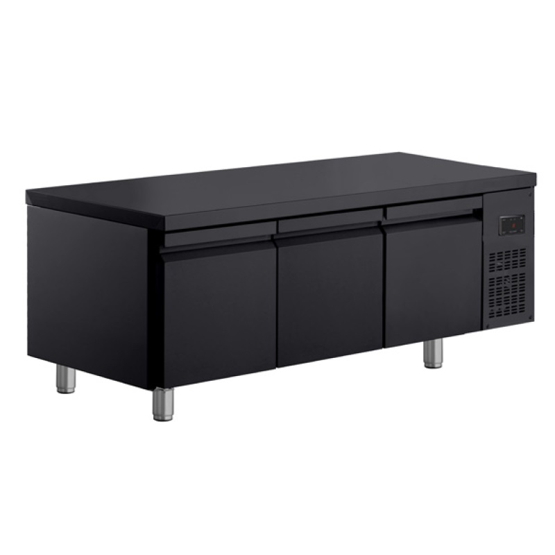 Ψυγείο πάγκος χαμηλό 160x70x64 συντήρηση μαύρο χρώμα με 3 πόρτες χωρίς ψυκτικό μηχάνημα PWDB777/40/RU INOMAK