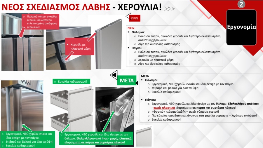 - 3 εναλλακτικές διατάξεις συρταριών (2xGN ½, 3xGN 1/3, GN2/3 +1/3)