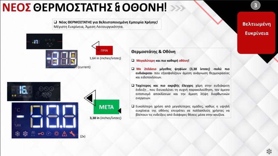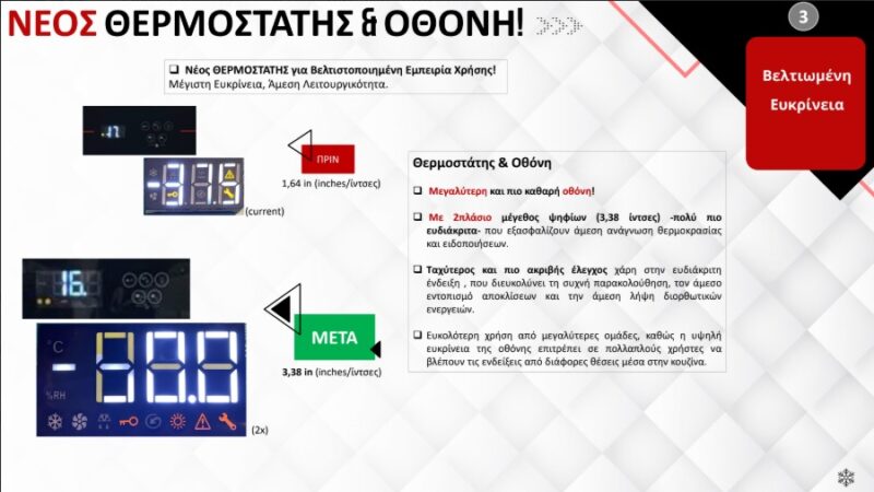 - Θερμοστάτης “ενσωματωμένου” σχεδιασμού, για εύκολη λειτουργία & καθαρισμό