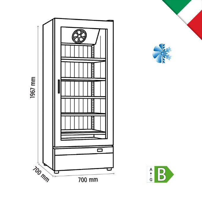 Βιτρίνα συντήρησης Self Service μονή μαύρο χρώμα πόρτες frameless ROMA 70 TN BLACK Klimaitalia