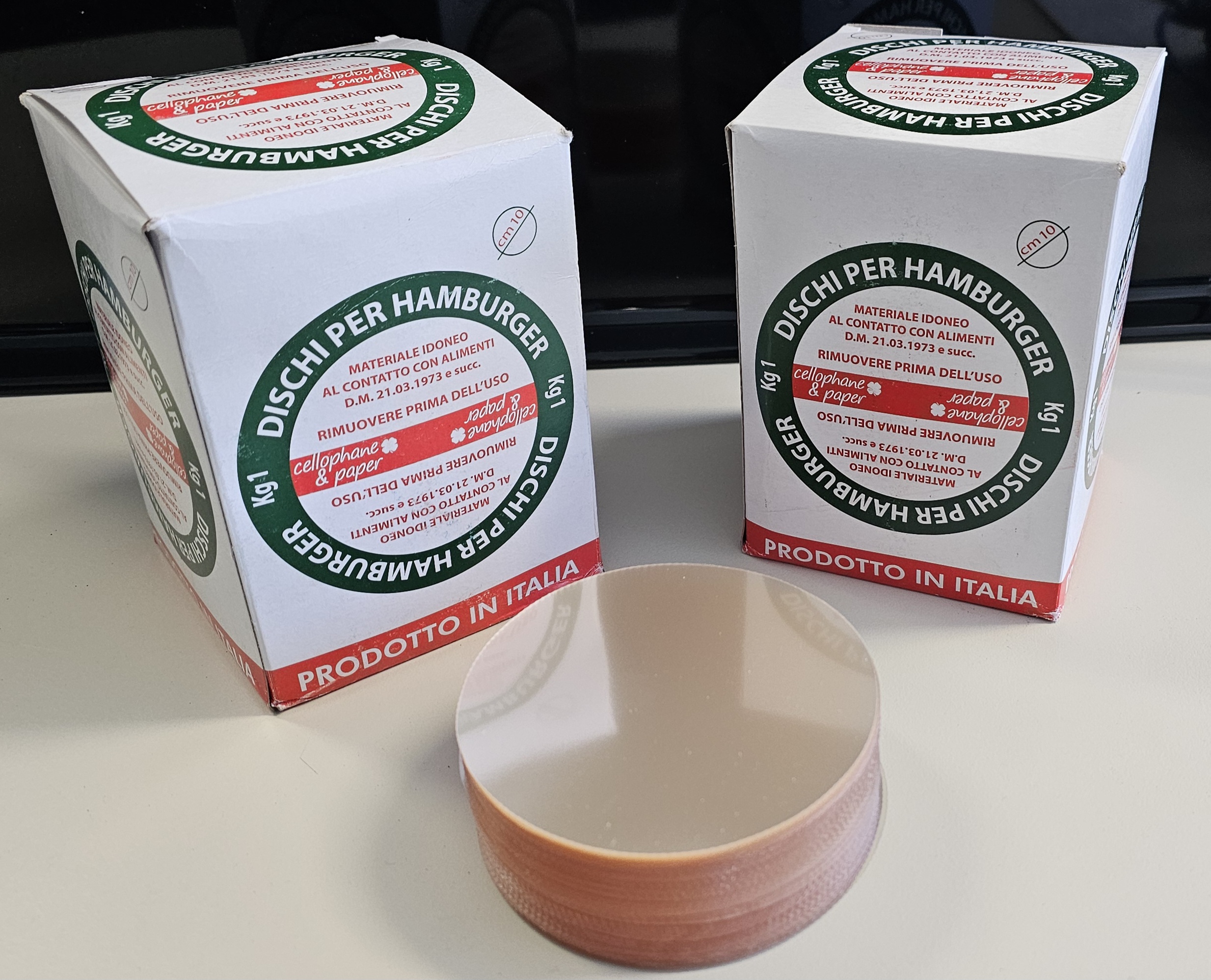 Σελοφάν μπιφτεκιών το κιλό διάμετρος 13 cm για συσκευασία και άμεση χρήση για φορμαριστικές μπιφτεκομηχανές