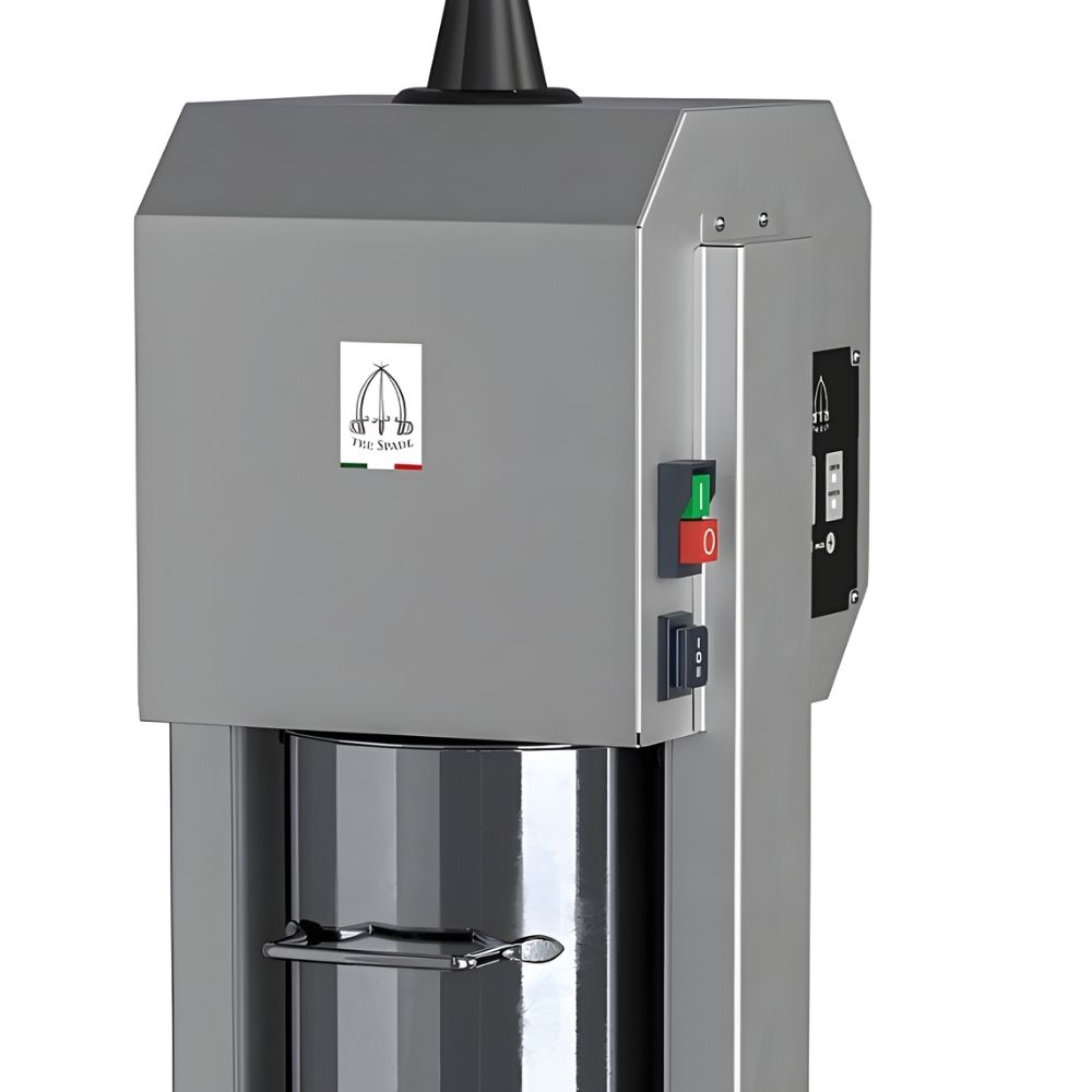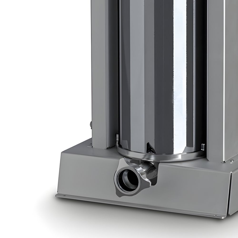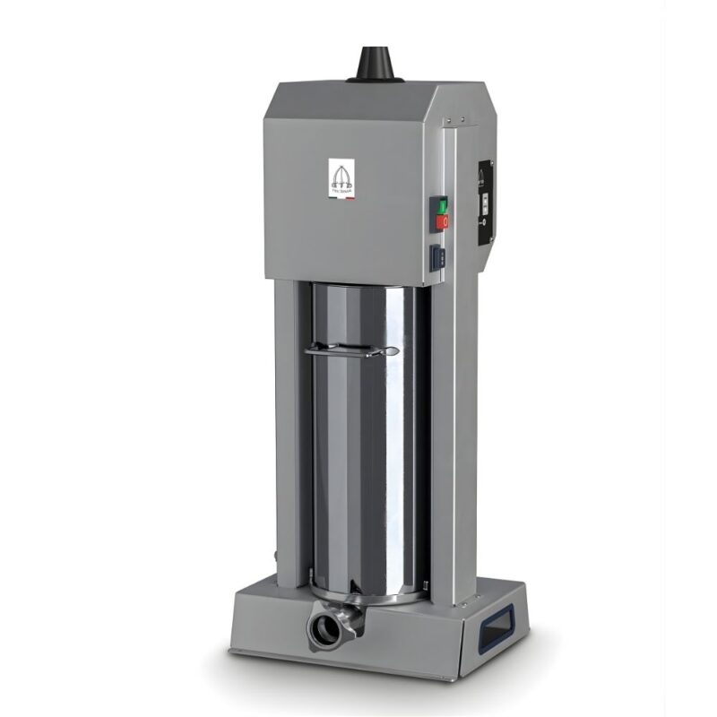 Επαγγελματικό ηλεκτρικό γεμιστικό λουκάνικων με υψηλή ταχύτητα και ακρίβεια στην παραγωγή κάθε τύπου λουκάνικου. Η κάθετη κατασκευή του από ανθεκτικό ανοξείδωτο ατσάλι εξασφαλίζει αντοχή και εύκολο καθαρισμό. Διαθέτει έξυπνο σύστημα λειτουργίας με πεντάλ ποδιού, επιτρέποντας στον χειριστή να έχει ελεύθερα τα χέρια του, ενώ η αυτόματη επιστροφή του εμβόλου επιταχύνει τη διαδικασία γεμίσματος. Με ρυθμιστή ταχύτητας για πλήρη έλεγχο της ροής και εξαιρετικά αθόρυβη λειτουργία (57db), για ομαλές συνθήκες εργασίας. Η ασφάλεια είναι προτεραιότητα, χάρη στο σύστημα προστασίας από υπερφόρτωση και τους ειδικούς μικροδιακόπτες. Τέλος, η πρόβλεψη για χειροκίνητη απελευθέρωση σε περίπτωση διακοπής ρεύματος εγγυάται ότι η παραγωγή δεν θα διακοπεί. Ιδανικό για κρεοπωλεία και μονάδες επεξεργασίας κρέατος. Συνοδεύεται από 4 χωνιά σε διαφορετικά μεγέθη (10-20-30-40mm)
