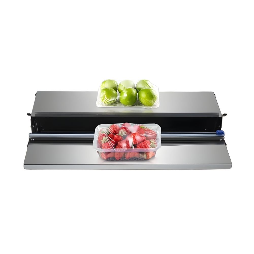 Χειροκίνητη συσκευή μεμβράνης κλειστού τύπου, κατασκευασμένη εξ ολοκλήρου από ανοξείδωτο ατσάλι για μέγιστη υγιεινή και αντοχή στον χρόνο. Ο κλειστός σχεδιασμός της προστατεύει το ρολό από εξωτερικούς ρύπους, διασφαλίζοντας την καθαρότητα της μεμβράνης. Είναι ιδανική για τη συσκευασία κρέατος, τυριών, ζυμαρικών, φρούτων και λαχανικών, προσφέροντας επαγγελματικό αποτέλεσμα με μία κίνηση. Η αντικατάσταση της μεμβράνης γίνεται γρήγορα και απλά, καθιστώντας την εξαιρετικά φιλική προς τον χειριστή. Με ενσωματωμένο σύστημα κοπής ακριβείας, αποτελεί το πλέον αξιόπιστο εργαλείο για κρεοπωλεία, delicatessen και εργαστήρια τροφίμων που δίνουν έμφαση στη φρεσκάδα και την ταχύτητα εξυπηρέτησης.