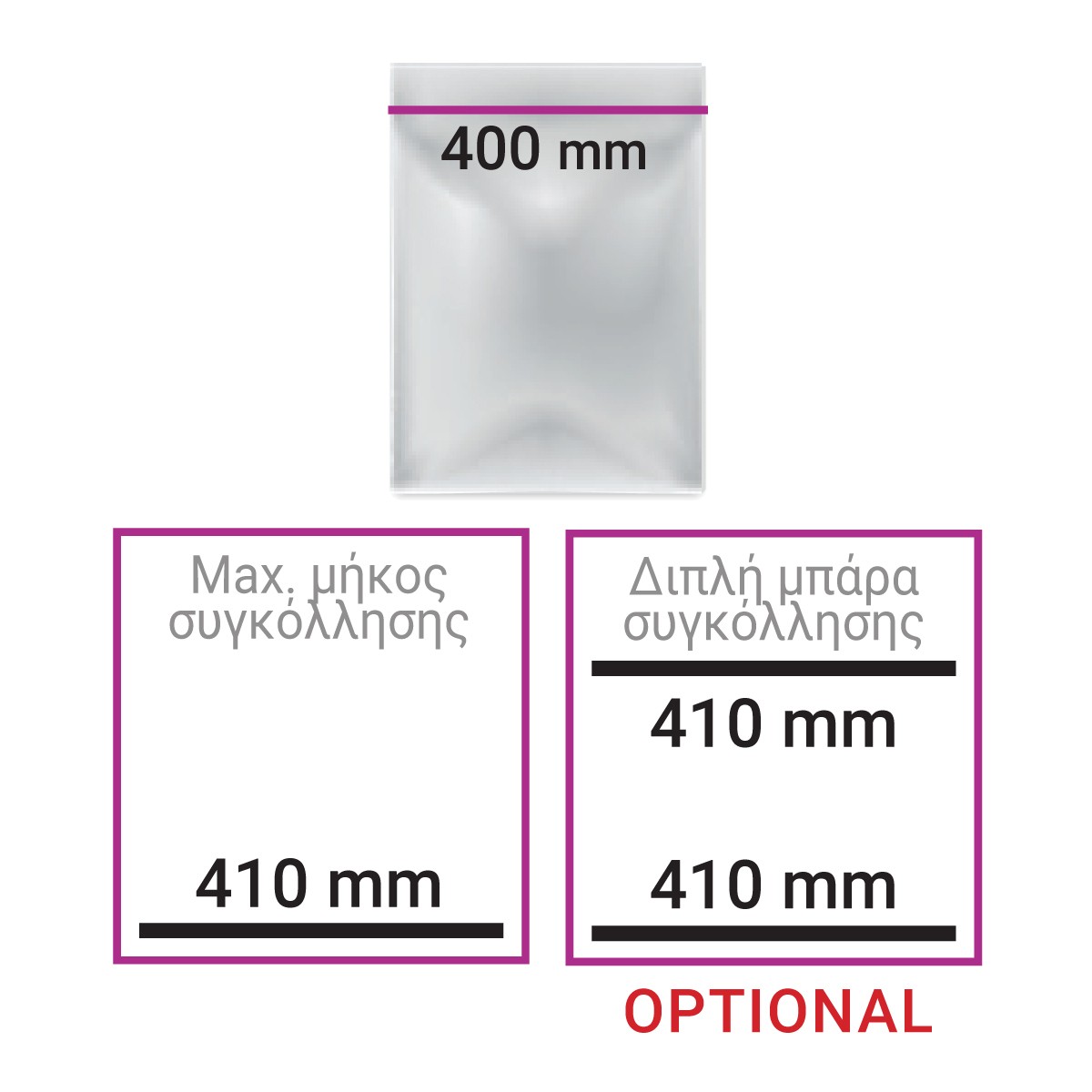 | Μέγιστο μήκος σακούλας: | 400 mm |