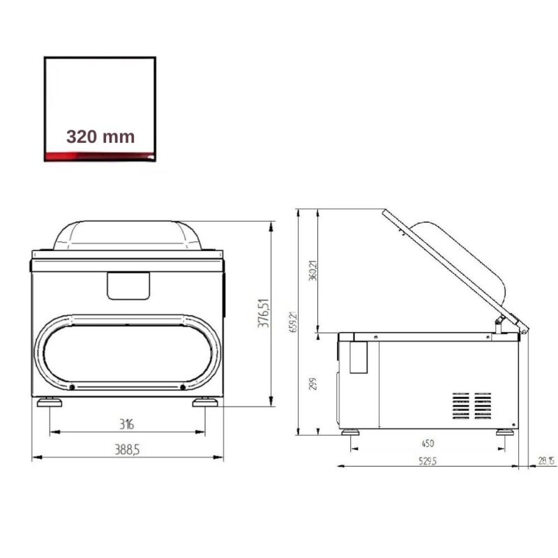 Συσκευή Vacuum εσωτερικής αναρρόφησης με μπάρα συγκόλλησης 320mm επιτραπέζιο, του εργοστασίου Waage Ιταλίας.