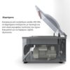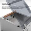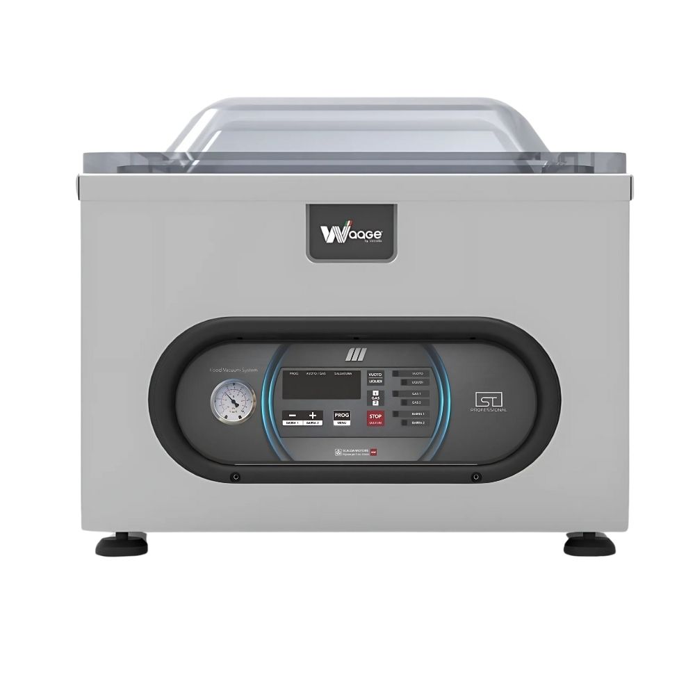Επιτραπέζιο μηχάνημα συσκευασίας κενού, κατασκευασμένο εξ' ολοκλήρου από ανοξείδωτο ατσάλι AISI 304. Ψηφιακός πίνακας ελέγχου με 9 αποθηκευτικά προγράμματα και φιλμ προστασίας από γρατσουνιές και υγρά. Με 2 τρόπους εργασίας σχεδιασμένους για την προετοιμασία τροφών υπό κενό. Ενσωματωμένη αντλία αφύγρανσης H2O. Αφαιρούμενες ράβδοι στεγανοποίησης για ευκολότερο καθάρισμα, διάφανο καπάκι από πλεξιγκλάς και ράφια πλήρωσης. Ο ψηφιακός πίνακας της σειράς ST Professional με χρονική επιλογή κενού και σφράγισης, εξαλείφει το 99% του κενού στο εσωτερικό του θαλάμου. Με αυτόν τον τρόπο με τα σφραγιστικά κενού ST επιτυγχάνουμε το μέγιστο κενό για τη διατήρηση του προϊόντος. Μέγιστη σακούλα φάκελος 350x450mm. Προγράμματα: Πρόγραμμα κενού Πρόγραμμα υγρών-μαρινάδας