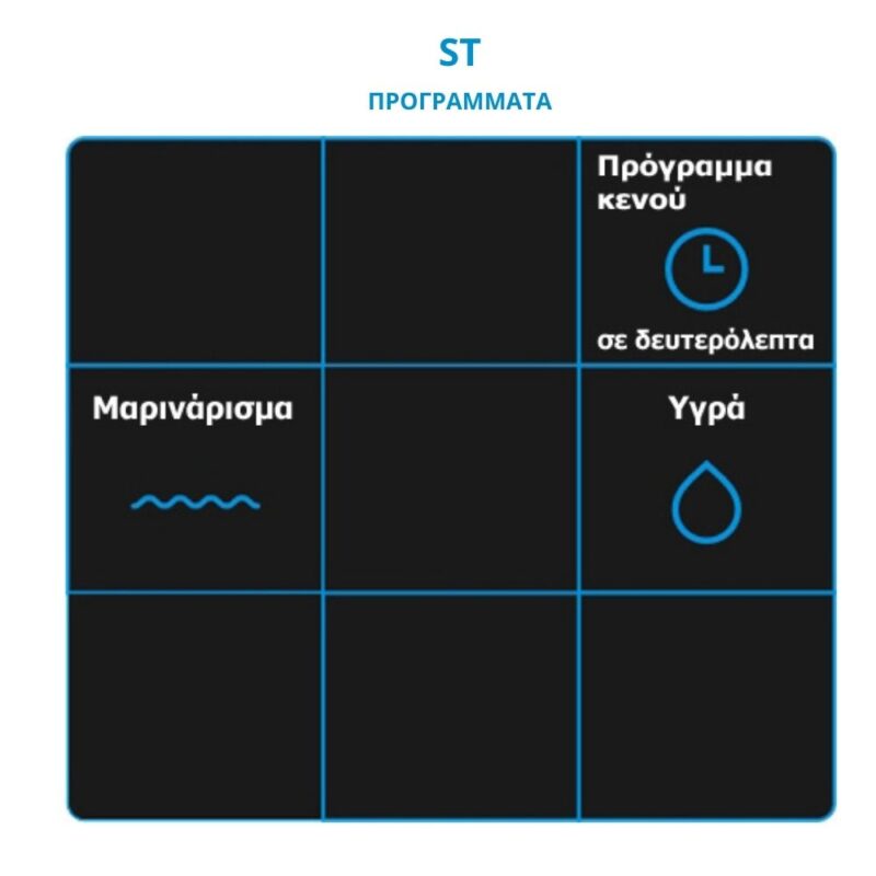- Η σειρά ST Professional με λειτουργίες όπως πρόγραμμα vacuum με επιλογή χρόνου, διαχείρισης υγρών και μαριναρίσματος, αφαιρεί τον αέρα από το εσωτερικό του θαλάμου.