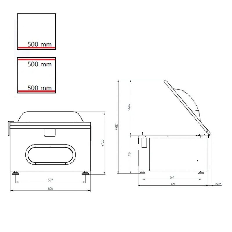 Συσκευή Vacuum εσωτερικής αναρρόφησης με μπάρα συγκόλλησης - 2x500mm επιτραπέζιο, του εργοστασίου Waage Ιταλίας.
