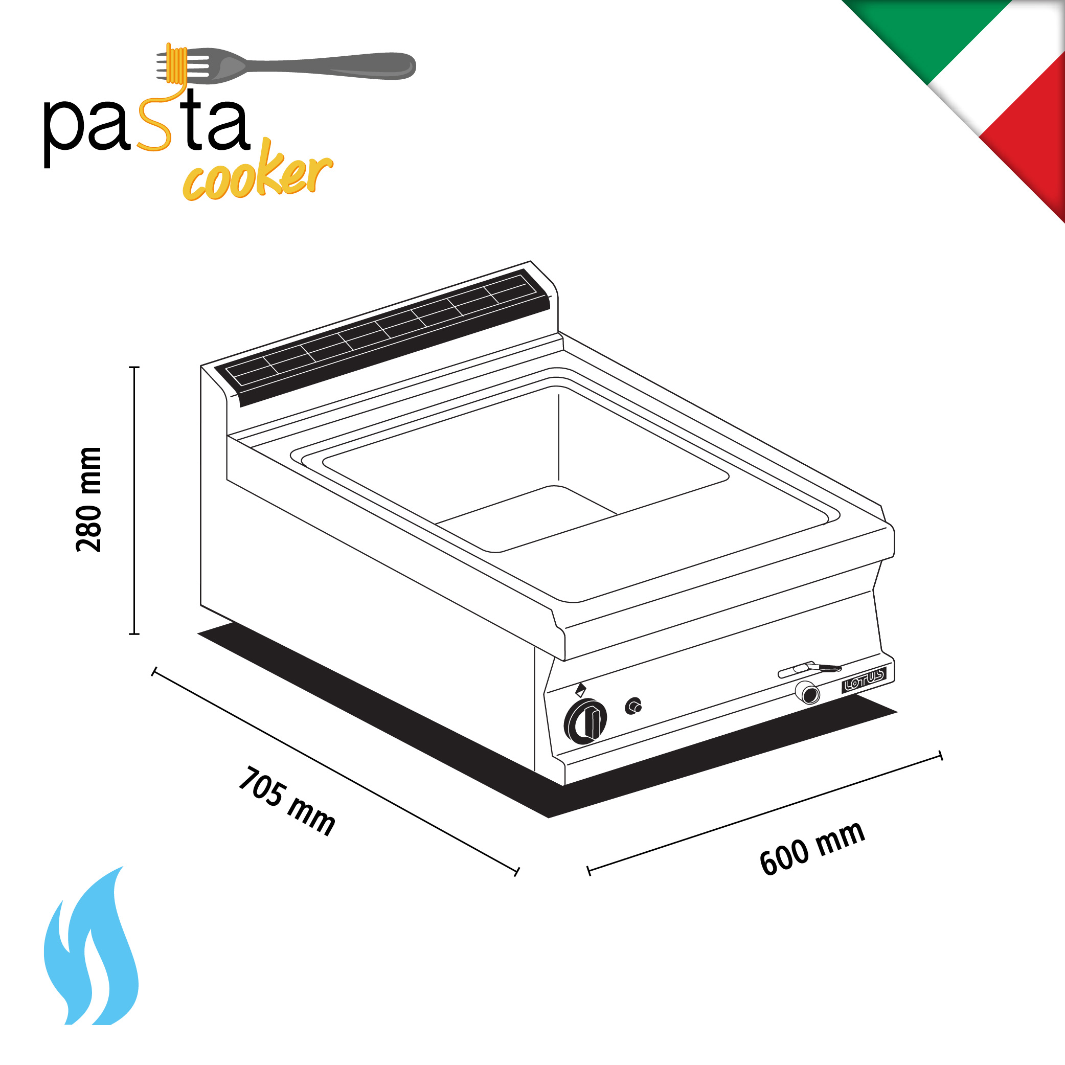 Επιτραπέζιος βραστήρας ζυμαρικών αερίου χωρητικότητας 19 lt, του εργοστασίου Lotus