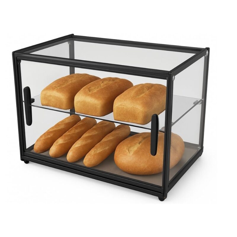 Βιτρίνα τροφίμων από ασφαλές γυαλί για ιδανική προβολή γλυκών, αρτοσκευασμάτων και σνακ σε επαγγελματικούς χώρους εστίασης.