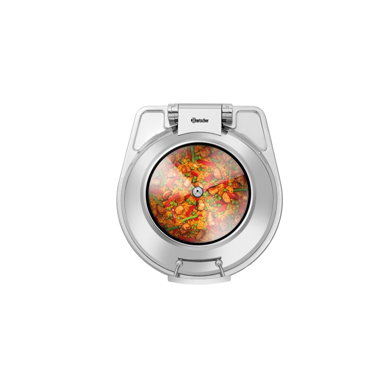 Bain Marie (Chafing-Dish) στρογγυλό, με καπάκι πολλαπλών θέσεων soft close & παράθυρο ελέγχου, Bartscher Γερμανίας.