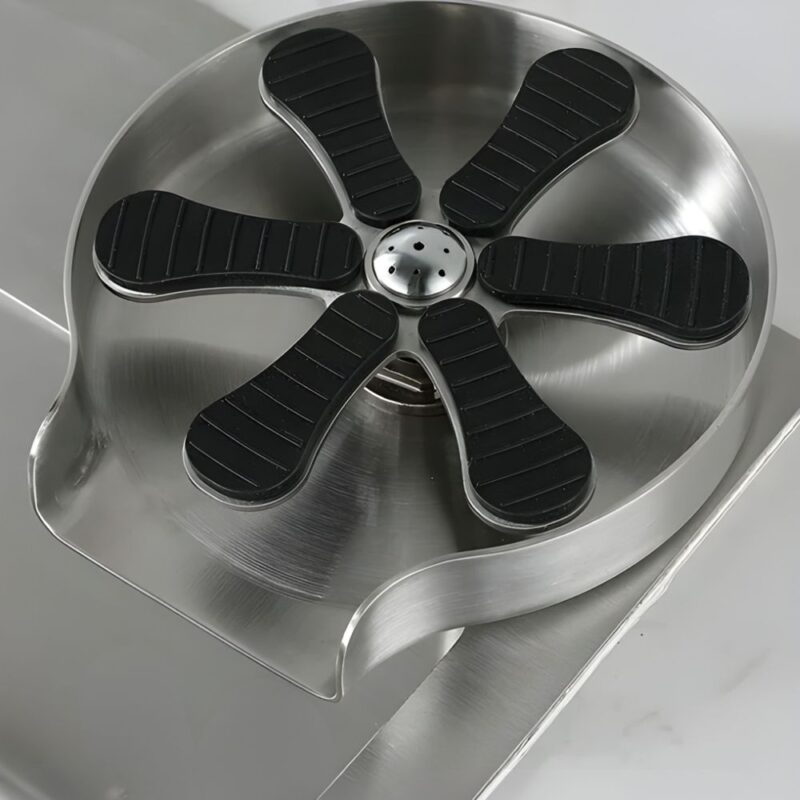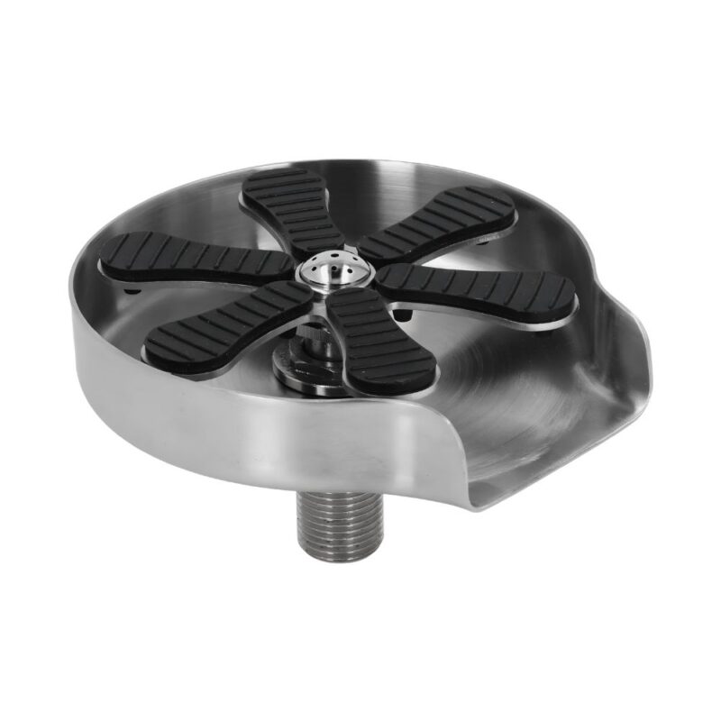 Επαγγελματική συσκευή καθαρισμού ποτηριών, απαραίτητο εργαλείο για bar, καφετέριες και εστιατόρια. Σχεδιασμένο για εντατική χρήση, διαθέτει σύστημα περιστροφής 360° με εκτοξευτήρες υψηλής πίεσης που απομακρύνουν υπολείμματα γάλακτος και ελαίων σε δευτερόλεπτα, χωρίς χειροκίνητο τρίψιμο. Σχεδιασμένη για σκεύη με στόμιο 3–11 εκατοστών, ιδανική για ποτήρια κρασιού, μπύρας και σέικερ. Τοποθετείται εύκολα σε κάθε επαγγελματικό πάγκο ή νεροχύτη, προσφέροντας εξοικονόμηση νερού και χρόνου και κόπου. Με έμφαση στην ανθεκτικότητα και την ταχύτητα εξυπηρέτησης, αποτελεί μια στρατηγική επένδυση για κάθε επαγγελματία που επιθυμεί άψογη παρουσίαση και ταχύτατο 'turnaround' στα σκεύη του.