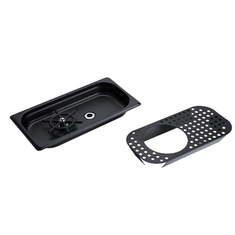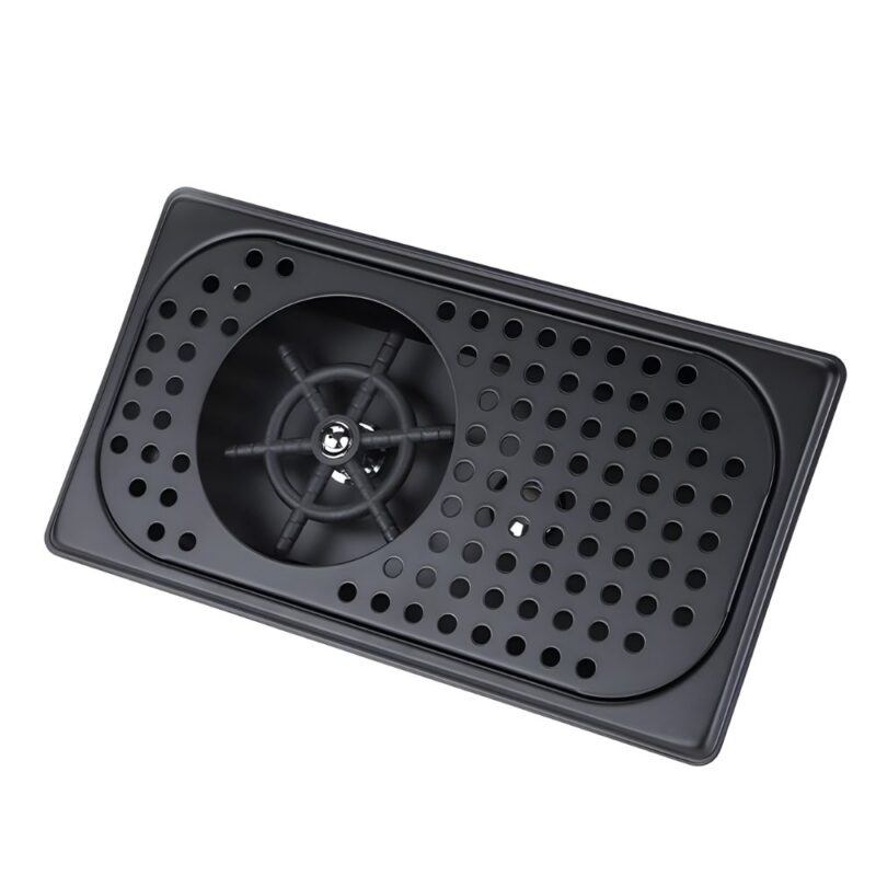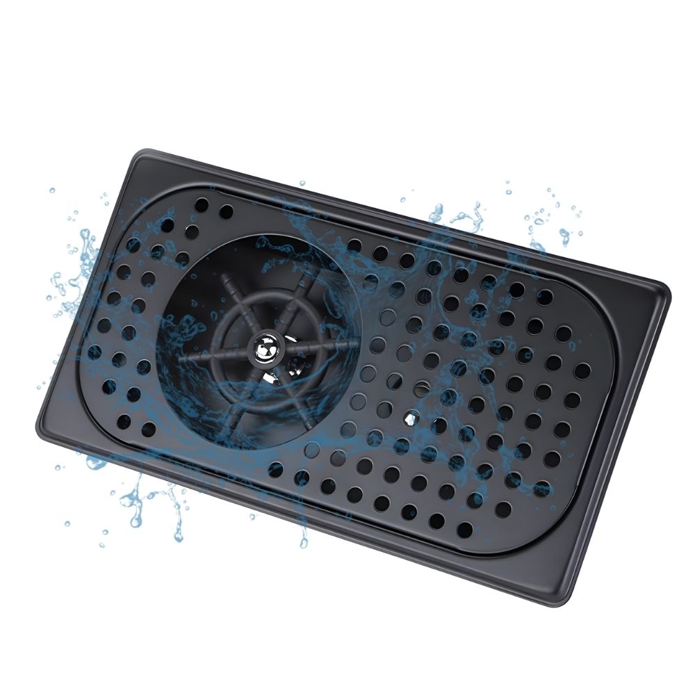 Επαγγελματικός Καθαριστής Ποτηριών Inox που τοποθετείται στον πάγκο. Σχεδιασμένος για την εστίαση, προσφέρει λειτουργία με το ένα χέρι: απλά πιέστε το σκεύος στη βάση για να ενεργοποιηθεί η κεφαλή πολλαπλών γωνιών. Οι πίδακες υψηλής πίεσης απομακρύνουν υπολείμματα γάλακτος, καφέ ή κραγιόν σε δευτερόλεπτα, εξασφαλίζοντας 70% εξοικονόμηση νερού σε σχέση με το παραδοσιακό πλύσιμο. Είναι ιδανικός για επαγγελματικά σέικερ, ποτήρια κρασιού και κανάτες, διατηρώντας τα σκεύη πεντακάθαρα χωρίς στίγματα. Η κατασκευή από premium ατσάλι με μαύρο φινίρισμα είναι ανθεκτική στα δακτυλικά αποτυπώματα, ενώ ο αποσπώμενος δίσκος διευκολύνει τον καθαρισμό του πάγκου. Αξιόπιστη λύση για κάθε σύγχρονο bar, cafe ή εστιατόριο.