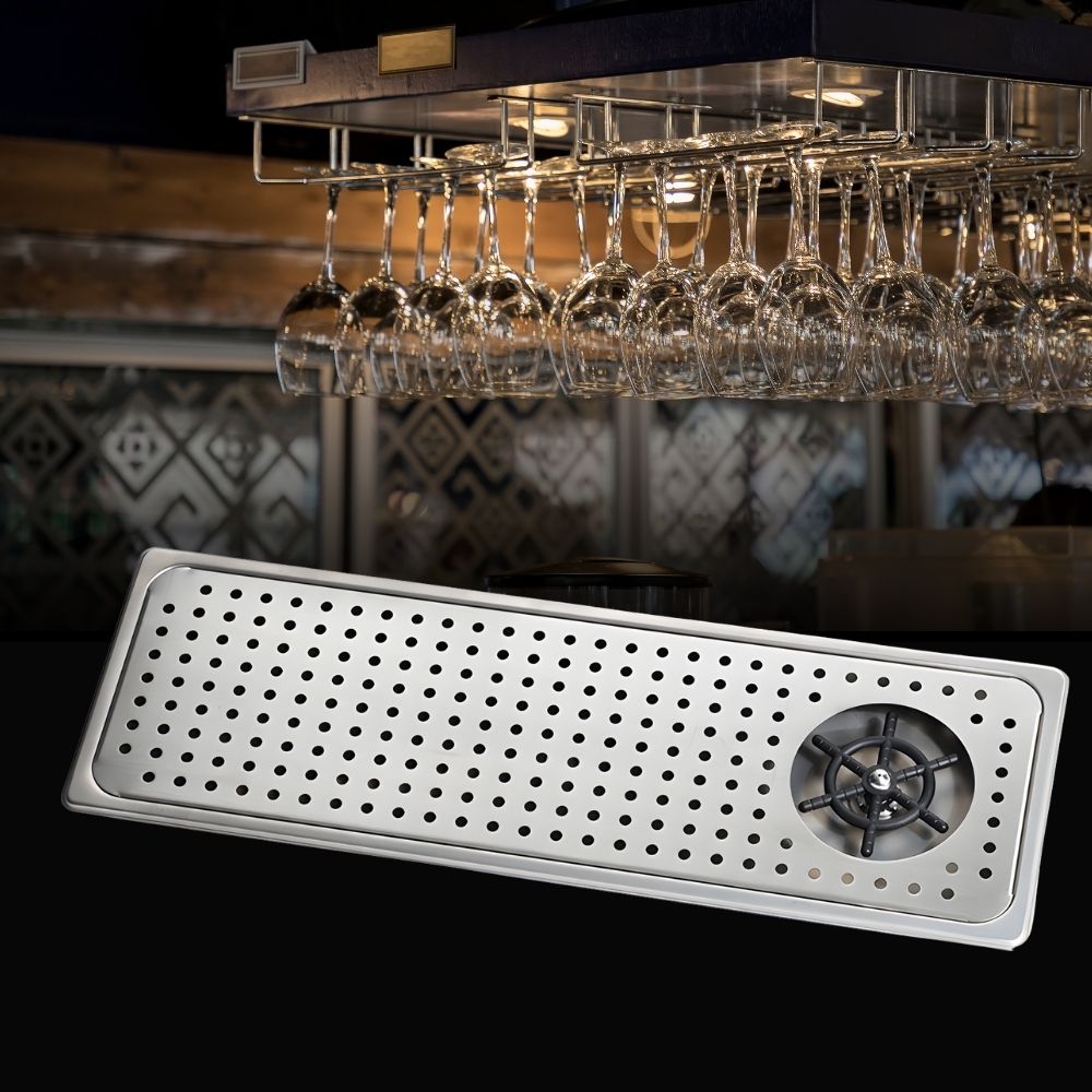 Επαγγελματικός Καθαριστής Ποτηριών Inox που τοποθετείται στον πάγκο. Σχεδιασμένος για την εστίαση, προσφέρει λειτουργία με το ένα χέρι: απλά πιέστε το σκεύος στη βάση για να ενεργοποιηθεί η κεφαλή πολλαπλών γωνιών. Οι πίδακες υψηλής πίεσης απομακρύνουν υπολείμματα γάλακτος, καφέ ή κραγιόν σε δευτερόλεπτα, εξασφαλίζοντας 70% εξοικονόμηση νερού σε σχέση με το παραδοσιακό πλύσιμο. Είναι ιδανικός για επαγγελματικά σέικερ, ποτήρια κρασιού και κανάτες, διατηρώντας τα σκεύη πεντακάθαρα χωρίς στίγματα. Η κατασκευή από premium ατσάλι με μαύρο φινίρισμα είναι ανθεκτική στα δακτυλικά αποτυπώματα, ενώ ο αποσπώμενος δίσκος διευκολύνει τον καθαρισμό του πάγκου. Αξιόπιστη λύση για κάθε σύγχρονο bar, cafe ή εστιατόριο.